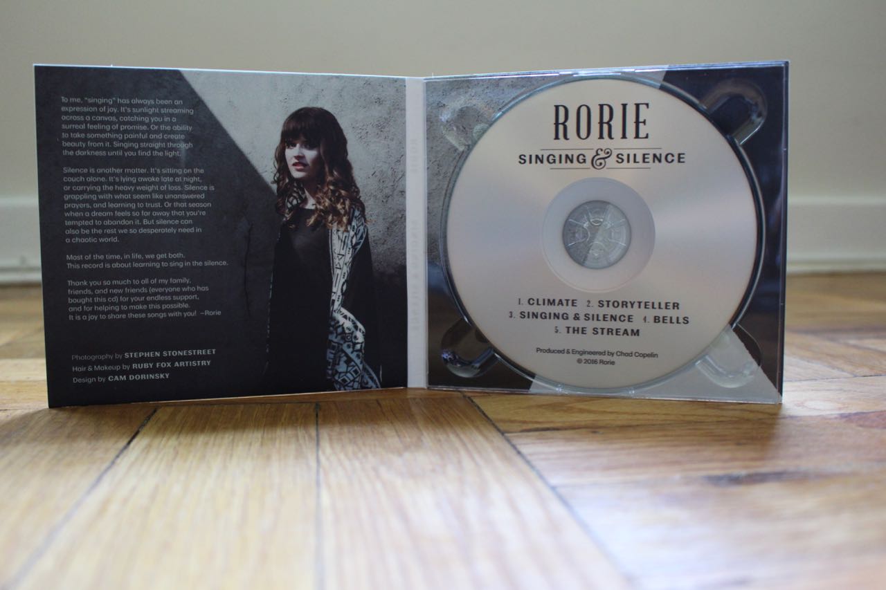 Physical copy of Rorie's EP, 'Singing & Silence.' (4 panel disc case)