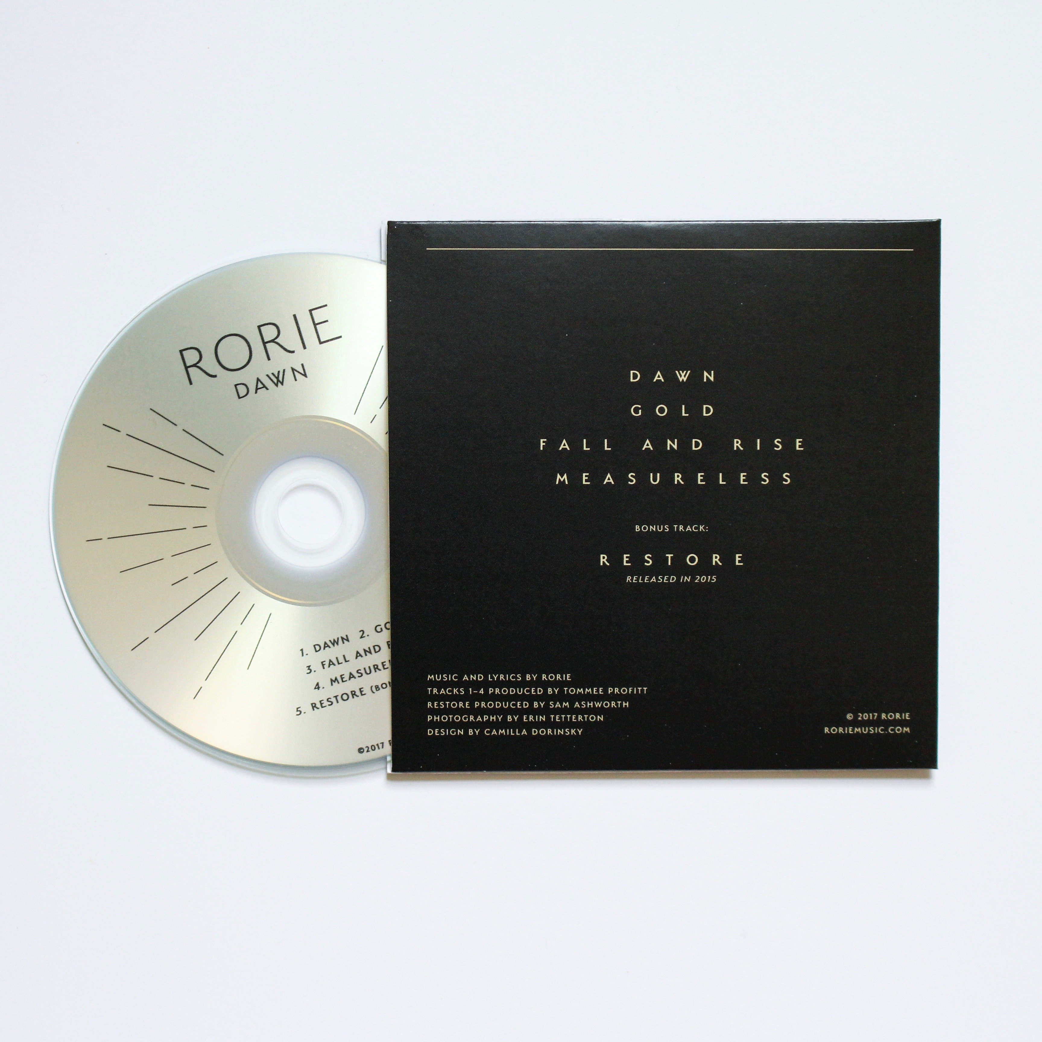 Physical copy of Rorie's EP, 'Dawn.' (cd and sleeve)